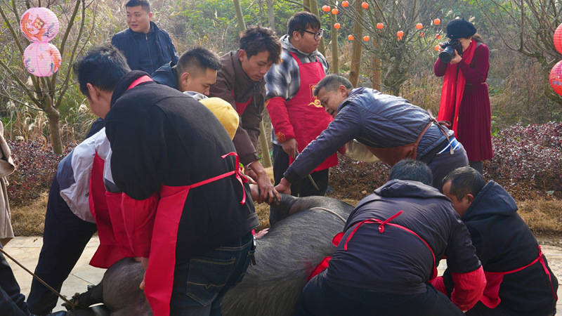 活动的重头戏莫过于充满地点风姿的杀猪饭。宰割好的清新猪肉被速即送入厨房,很快,一碗碗汹涌澎拜的屯堡脾气肉末粉被端上餐桌,香气四溢。随后,以清新猪肉烹制的各色菜肴无间登场,席间,更有旅客与村民自觉登台献唱,将现场讨厌映衬得相等浓烈。客东说念主们围坐一堂,在冬日的暖阳下大快朵颐,欢声笑语不停。