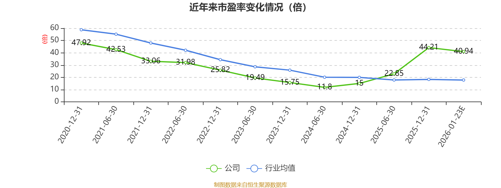 以本次透露事迹预报均值诡计,公司连年市盈率(TTM)图如下所示: