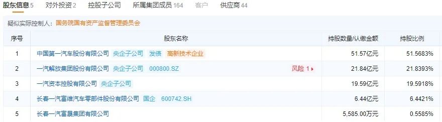工商信息清晰,一汽财务公司现存五名股东,控股股东为中国一汽,合手股比例为51.5683%;除正股东股权出售的一汽富维和一汽目田外,另两名股东为一汽成本控股有限公司和长春一汽富晟集团有限公司,合手股比例分辩为19.5915%和0.5585%。